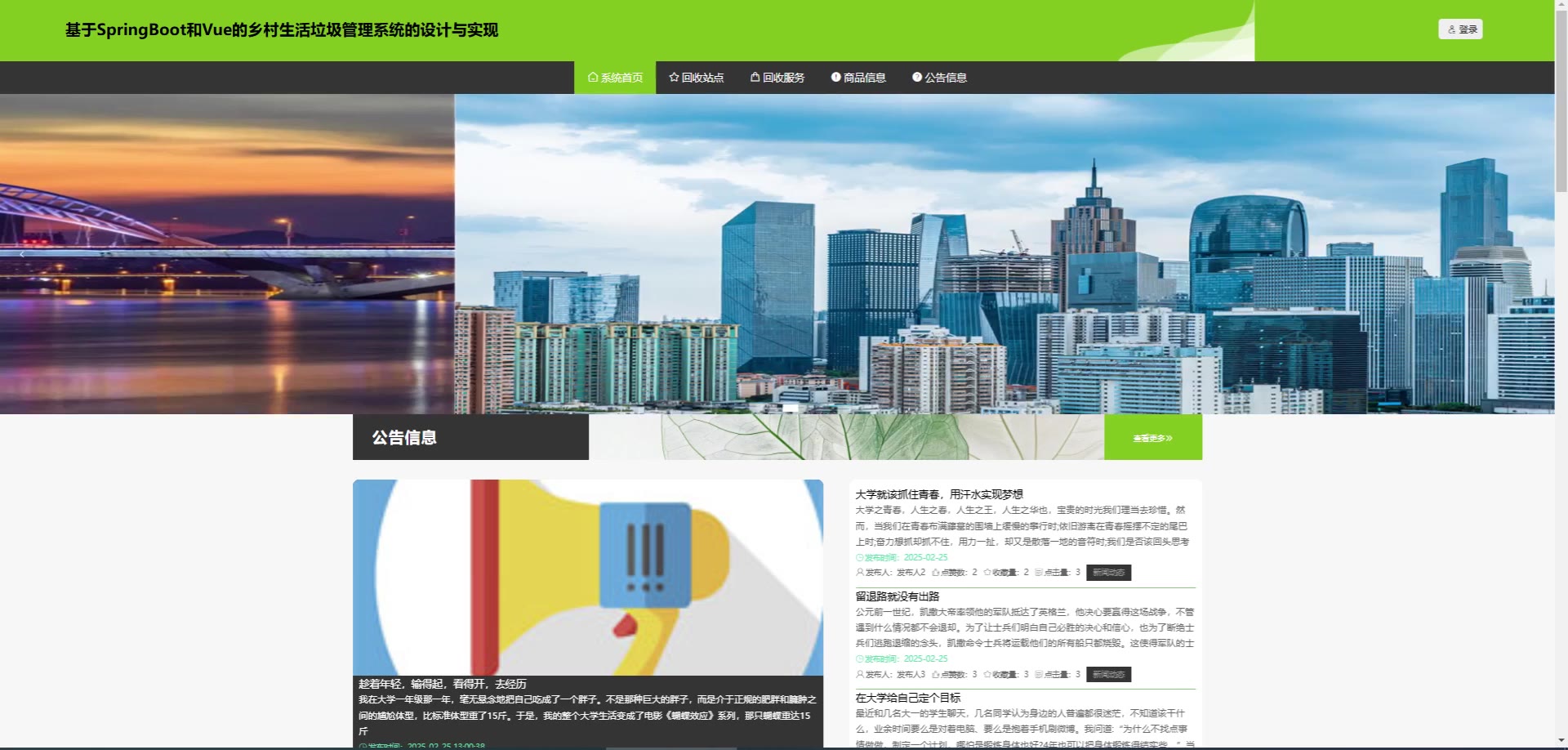 基于SpringBoot和Vue的乡村生活垃圾管理系统源码(提供导入教程+讲解)springboot2304