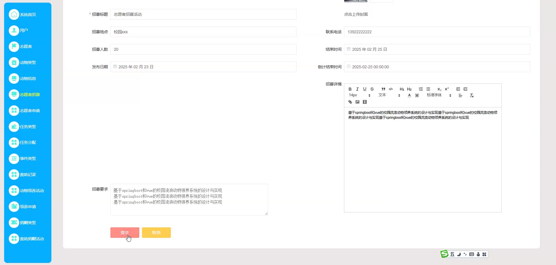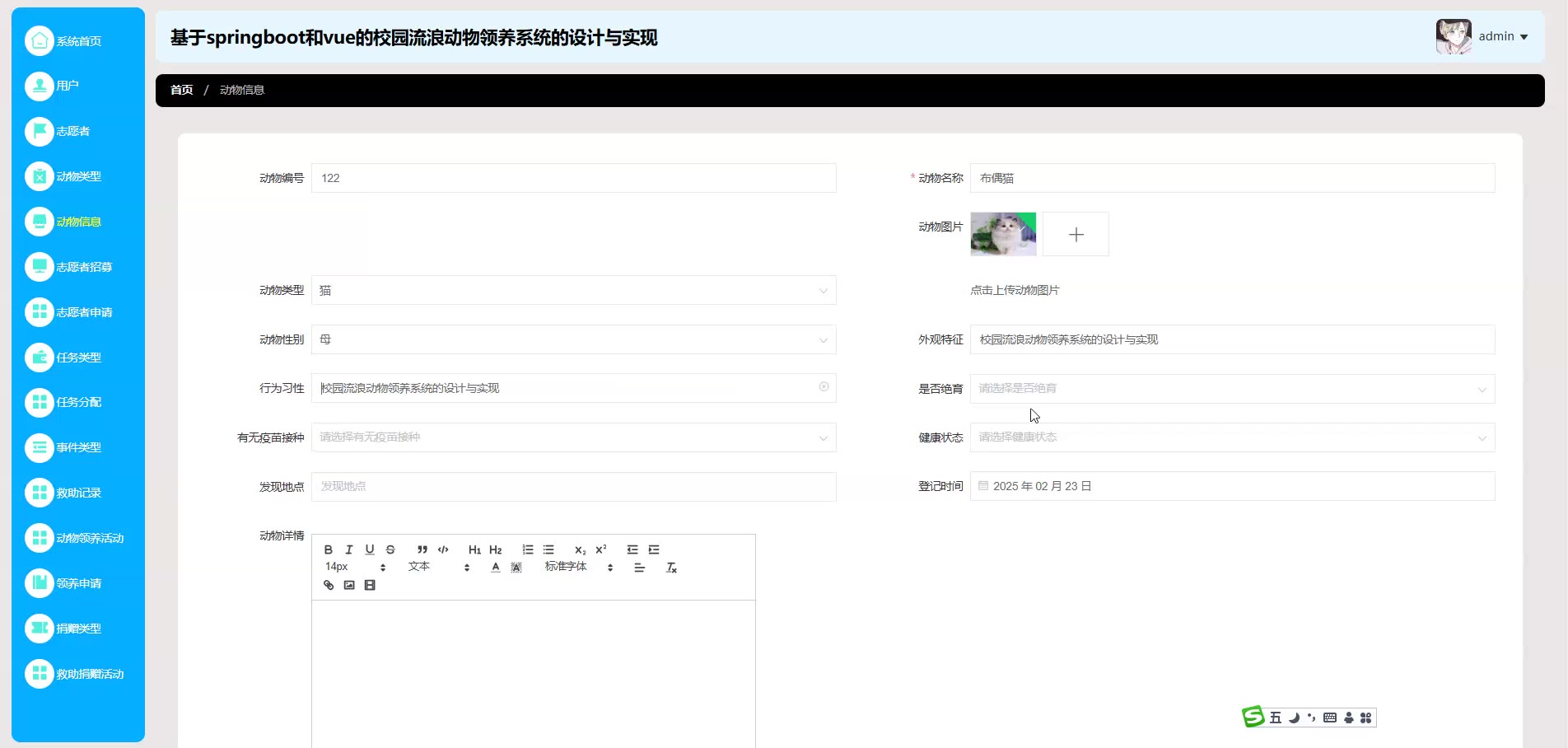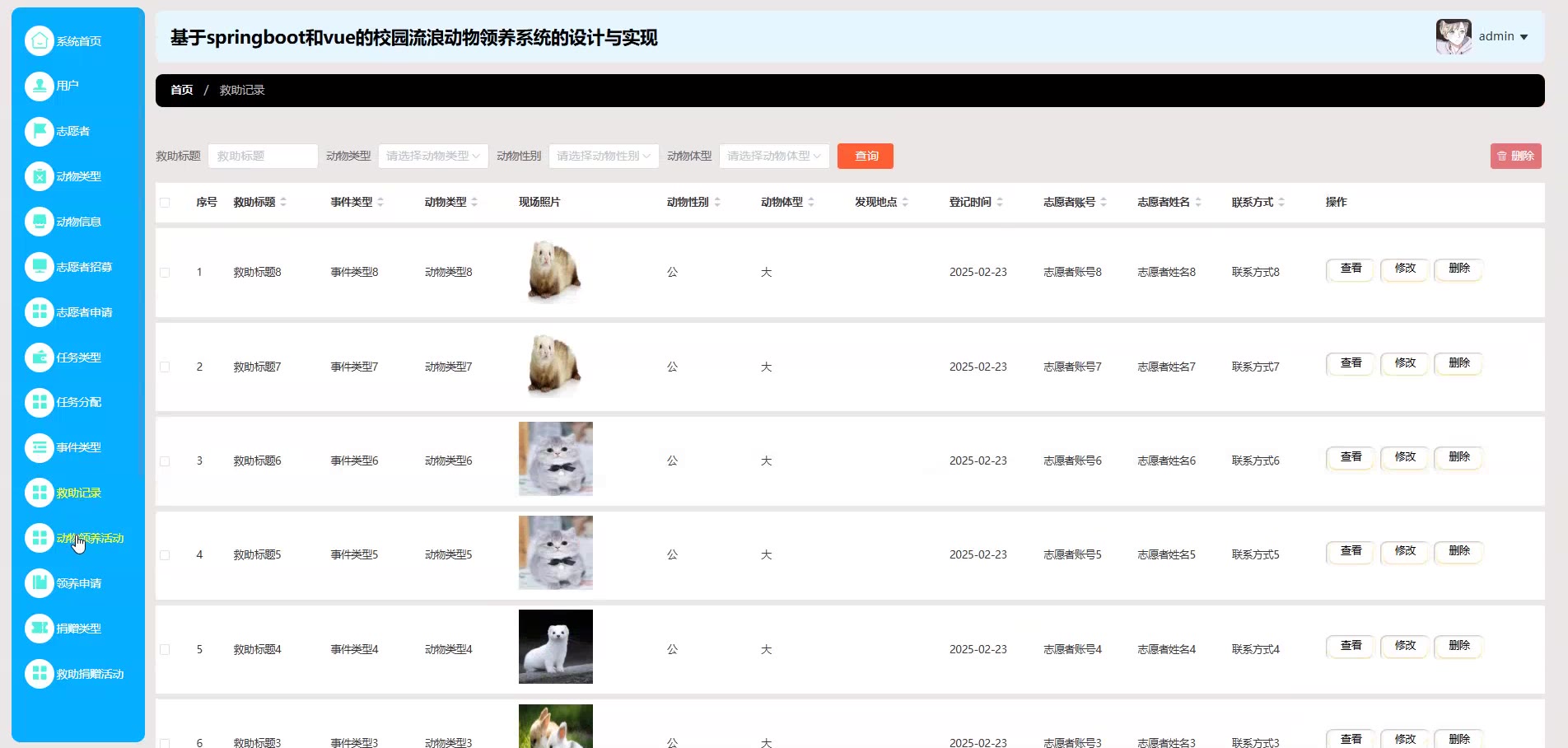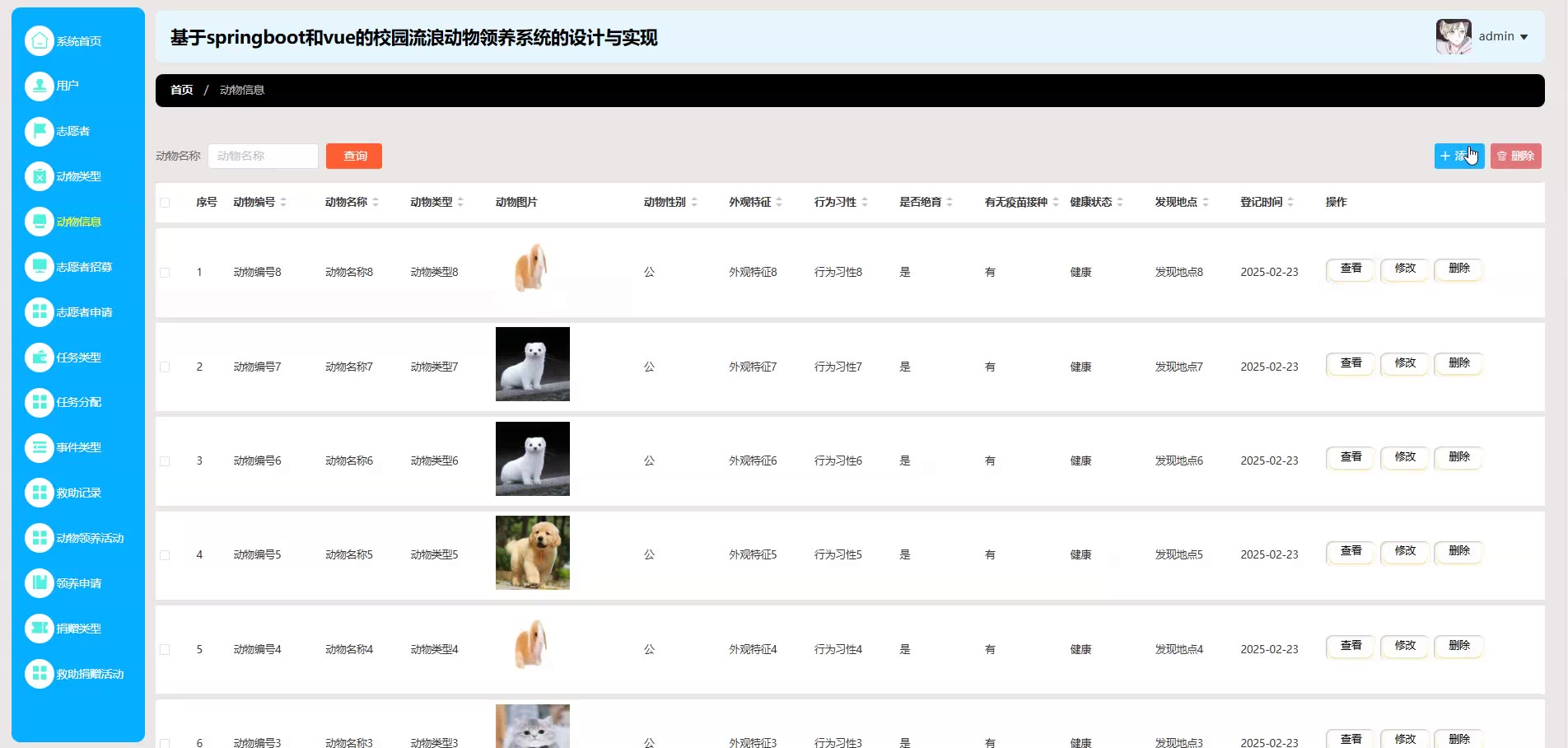 基于springboot和vue的校园流浪动物领养系统源码(提供导入教程+讲解)springboot2305