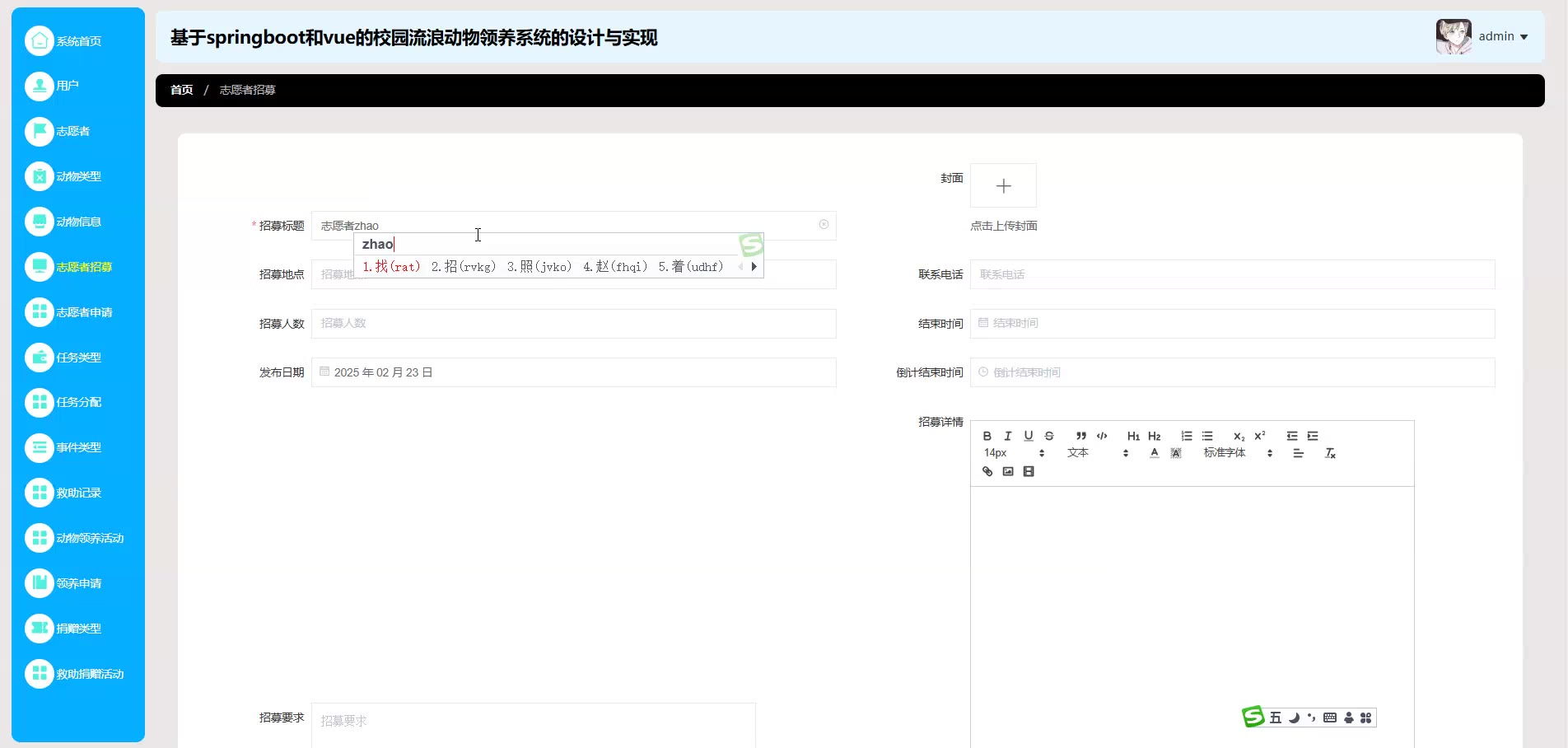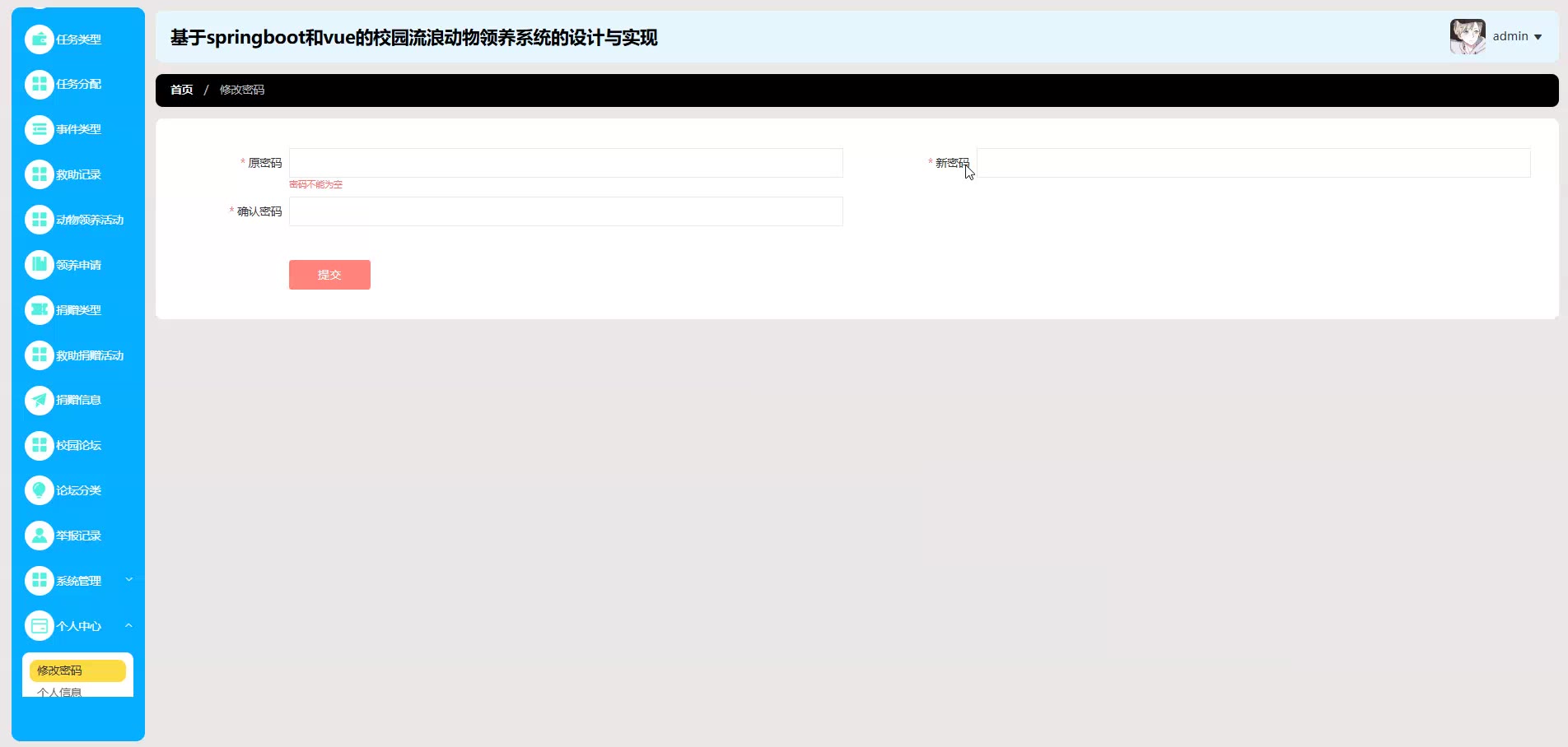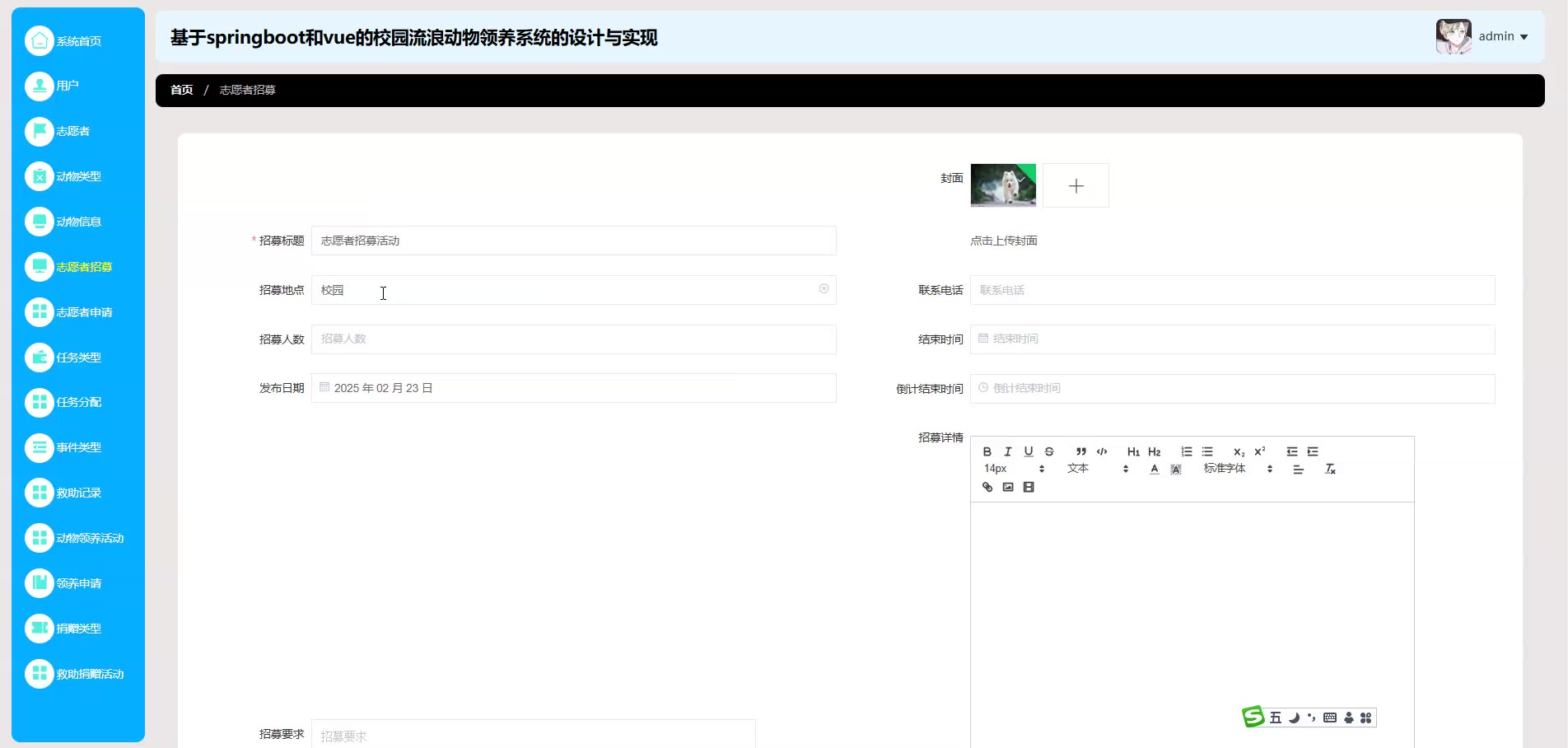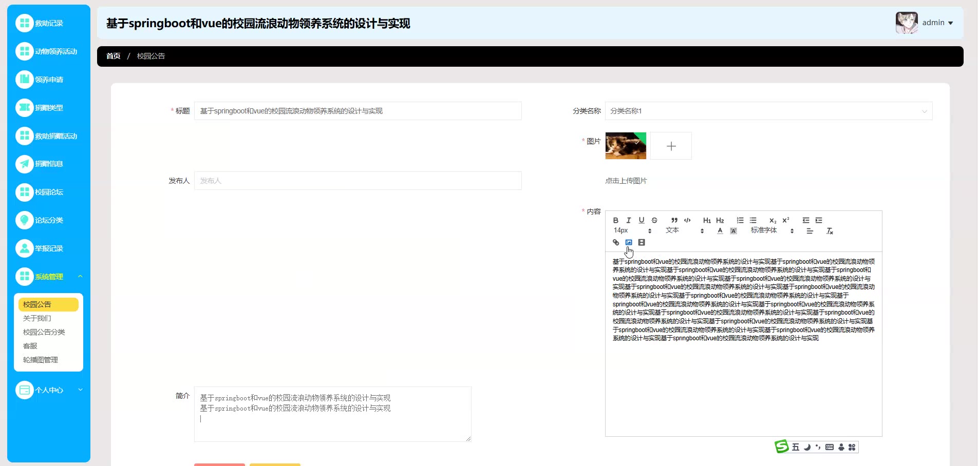 基于springboot和vue的校园流浪动物领养系统源码(提供导入教程+讲解)springboot2305