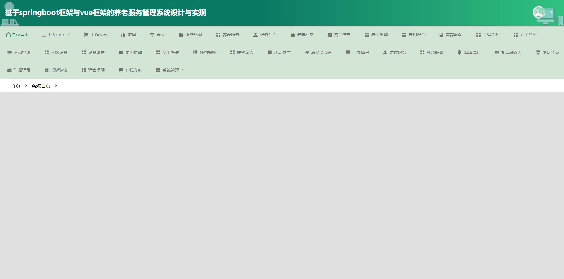 基于springboot框架与vue框架的养老服务管理系统源码(提供导入教程+讲解)springboot2308