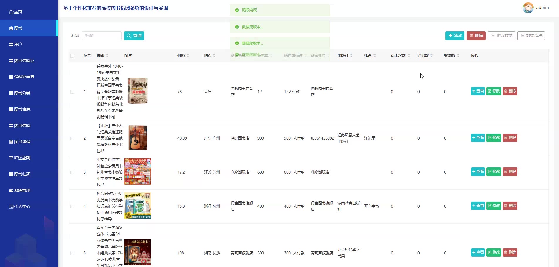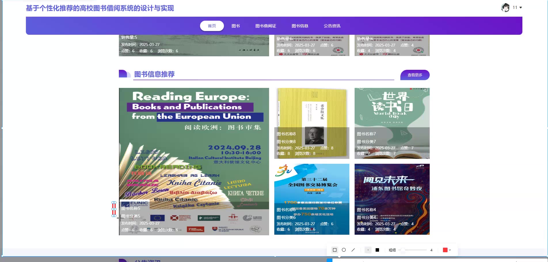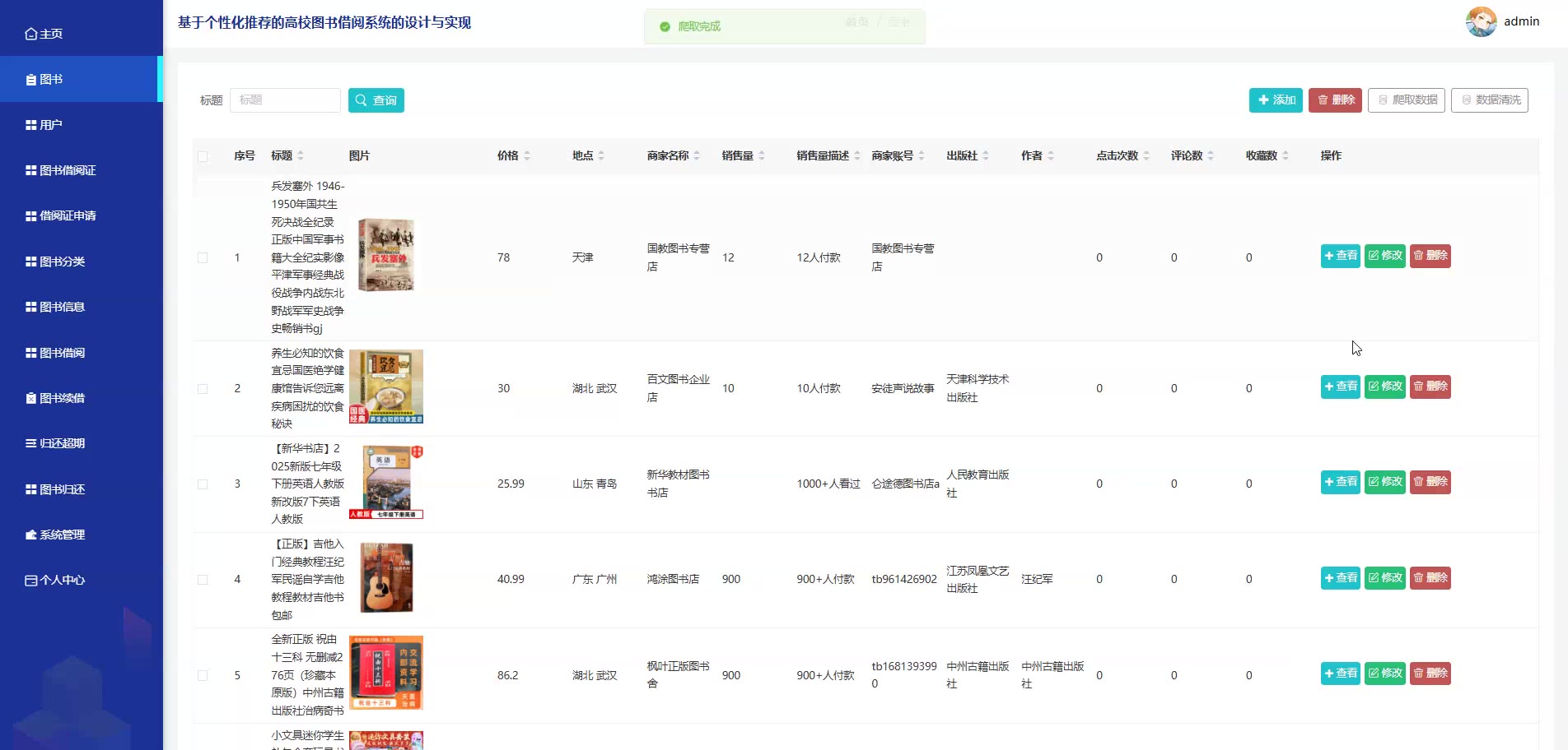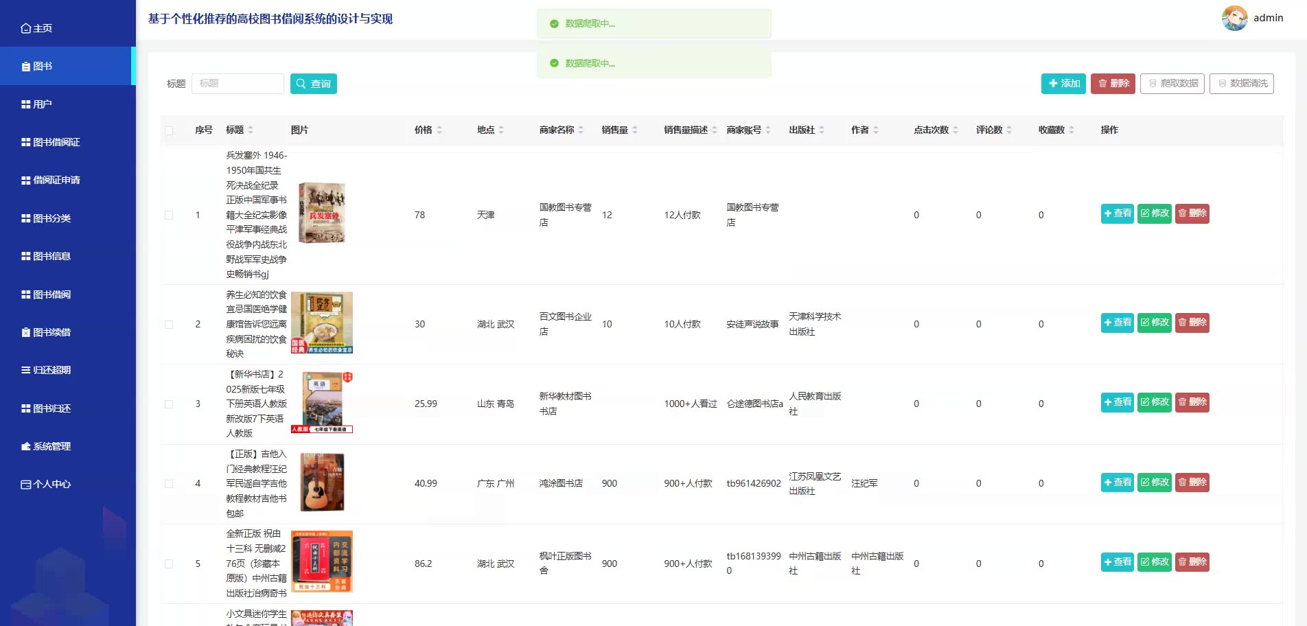 基于个性化推荐的SpringBoot Vue高校图书借阅系统源码(提供导入教程+讲解)springboot2323