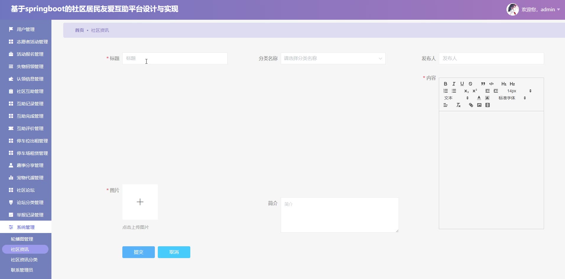 基于SpringBoot Vue的社区居民友爱互助平台源码(提供导入教程+讲解)springboot2346