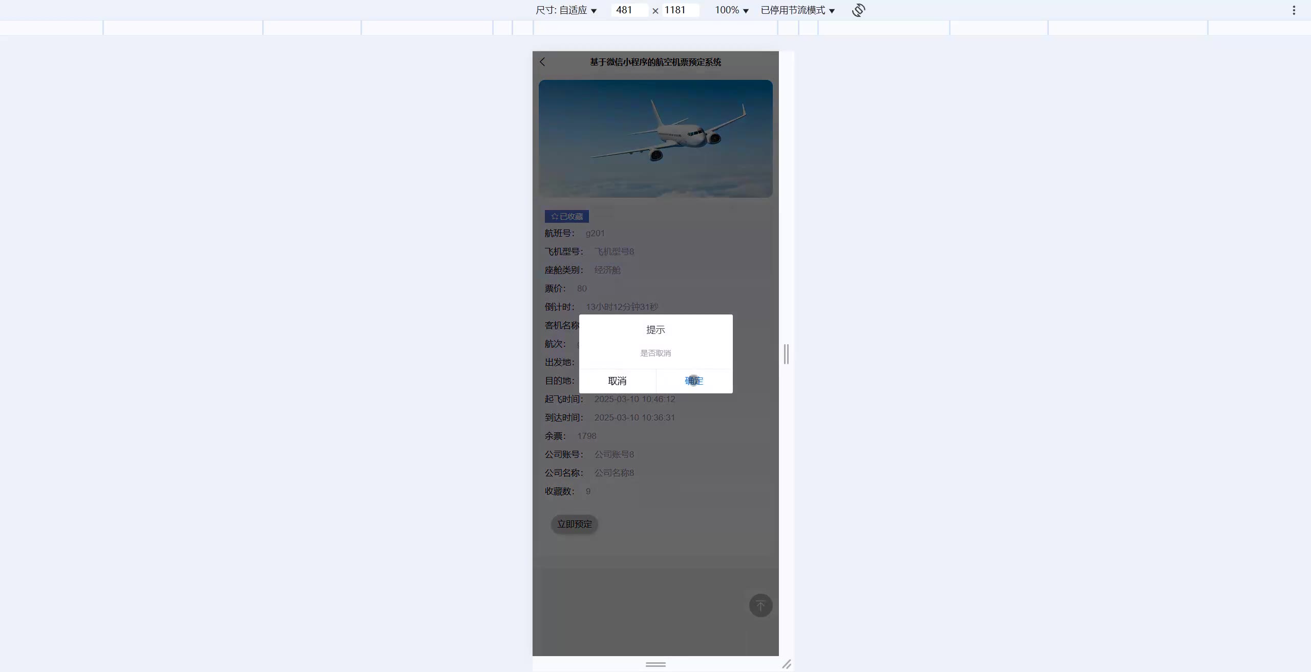 SpringBoot+Vue基于微信小程序的航空机票预订系统小程序源码weixin593