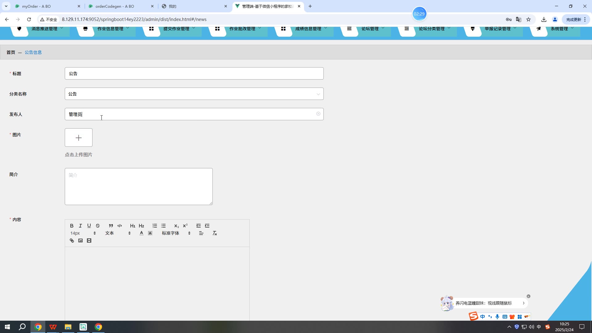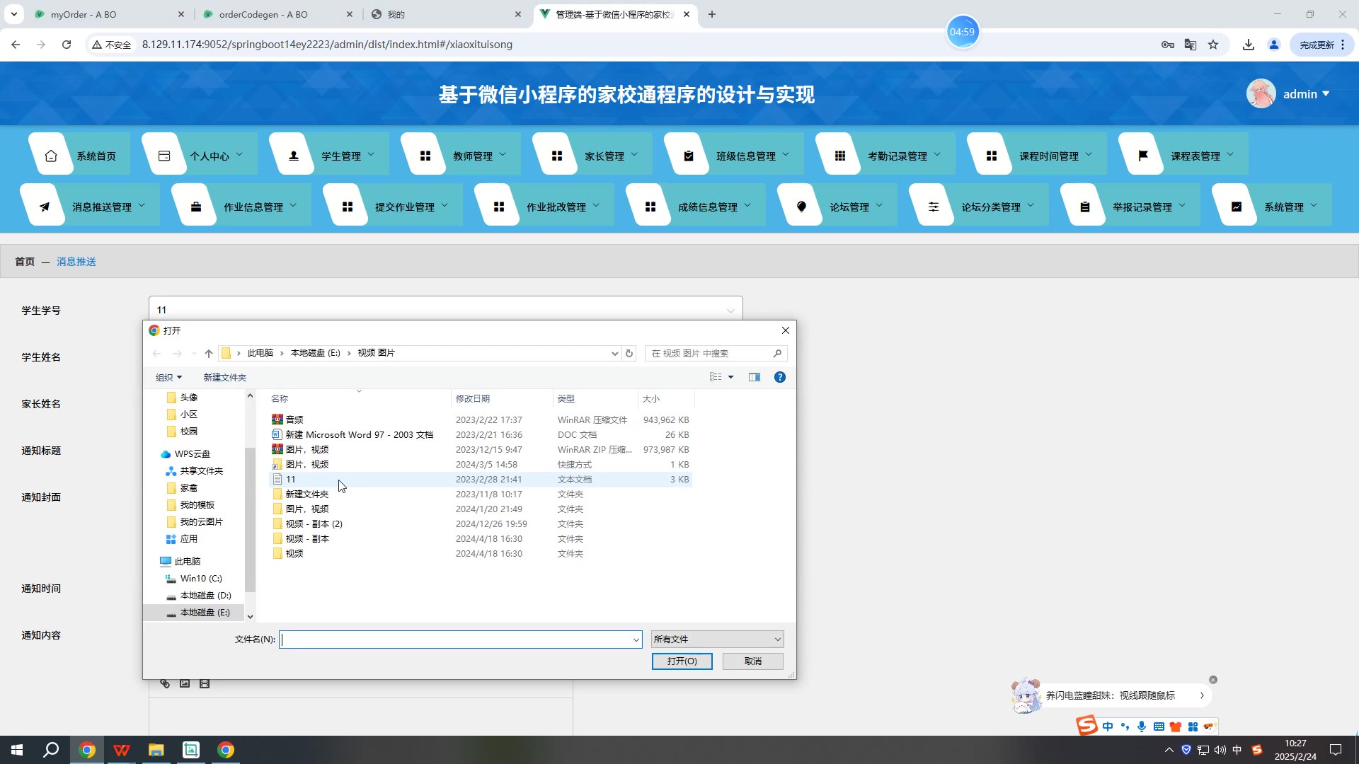 SpringBoot+Vue基于微信小程序的家校通程序小程序源码weixin594