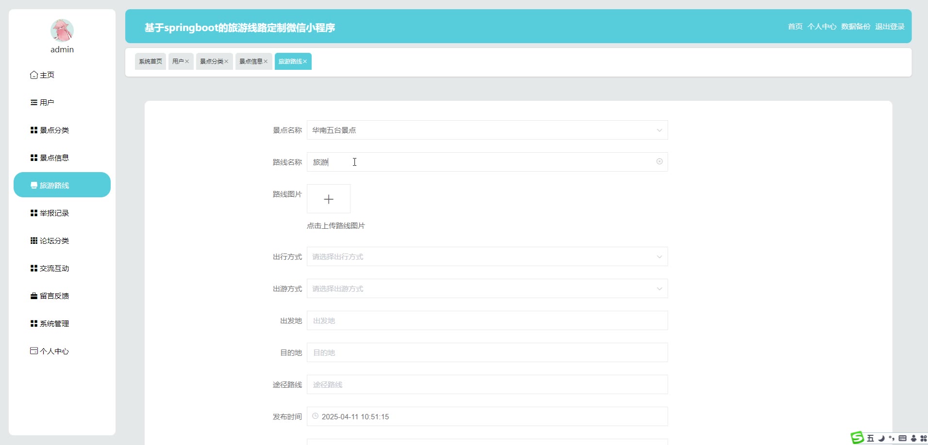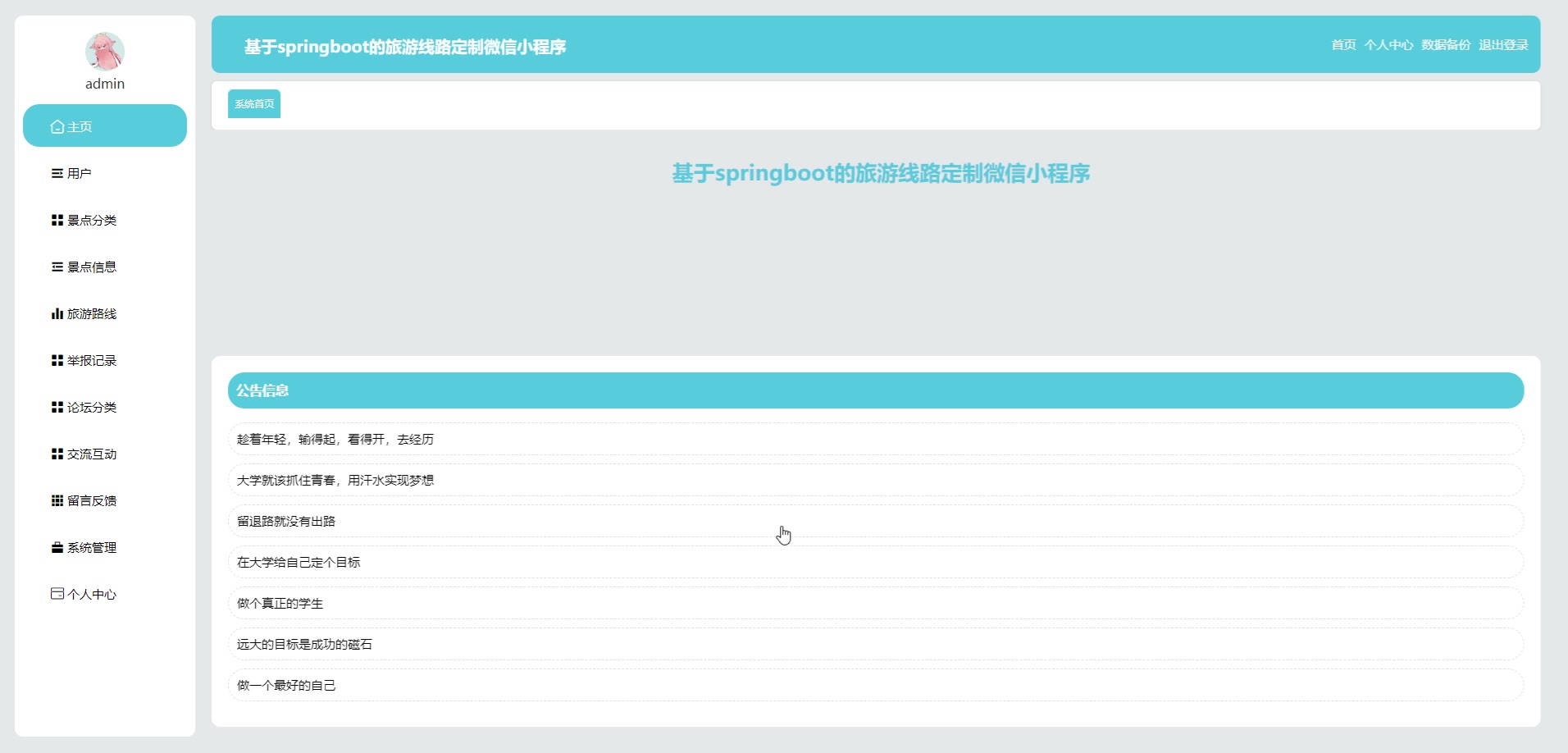 基于SpringBoot+Vue旅游线路定制微信小程序源码weixin618