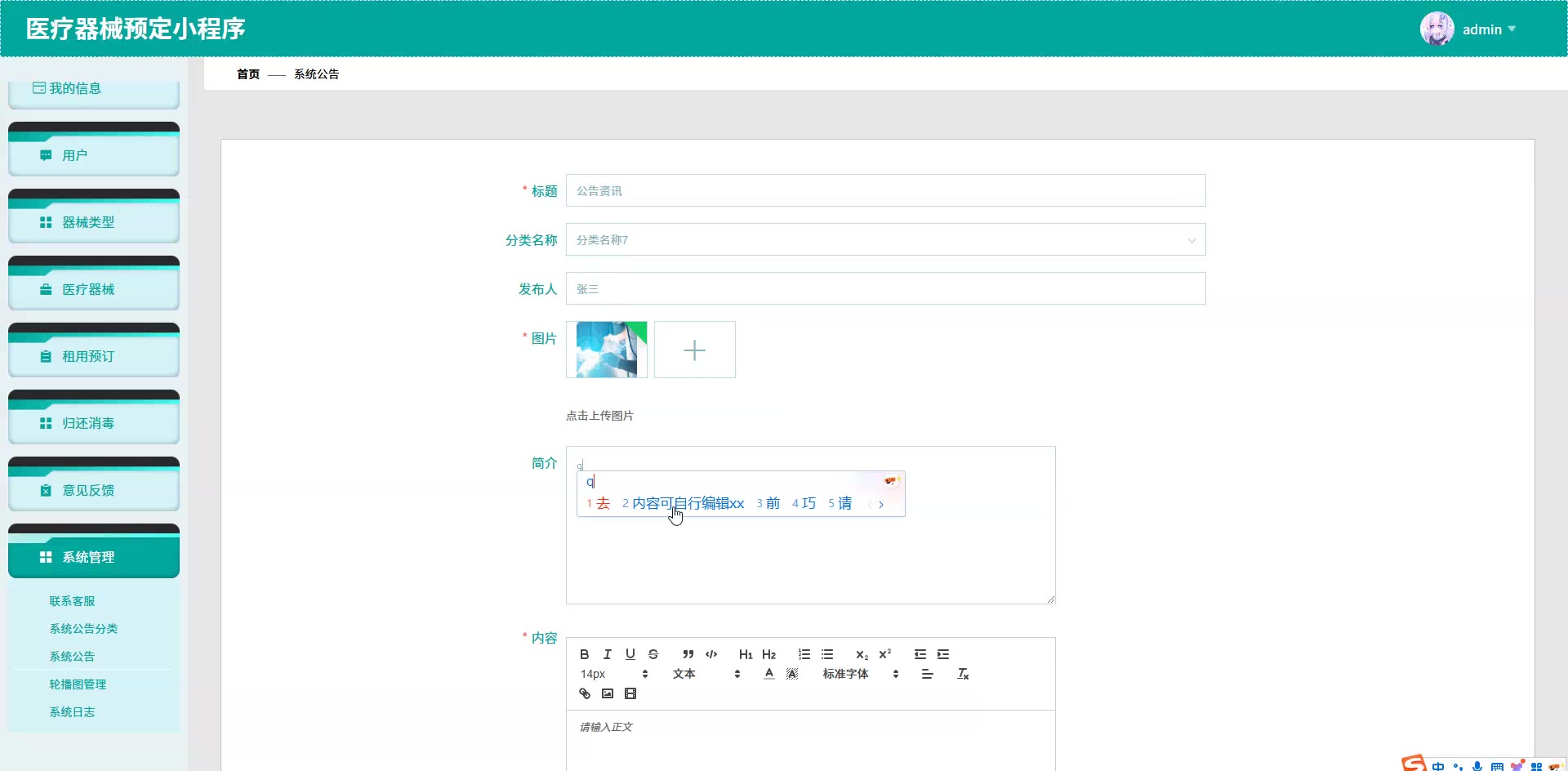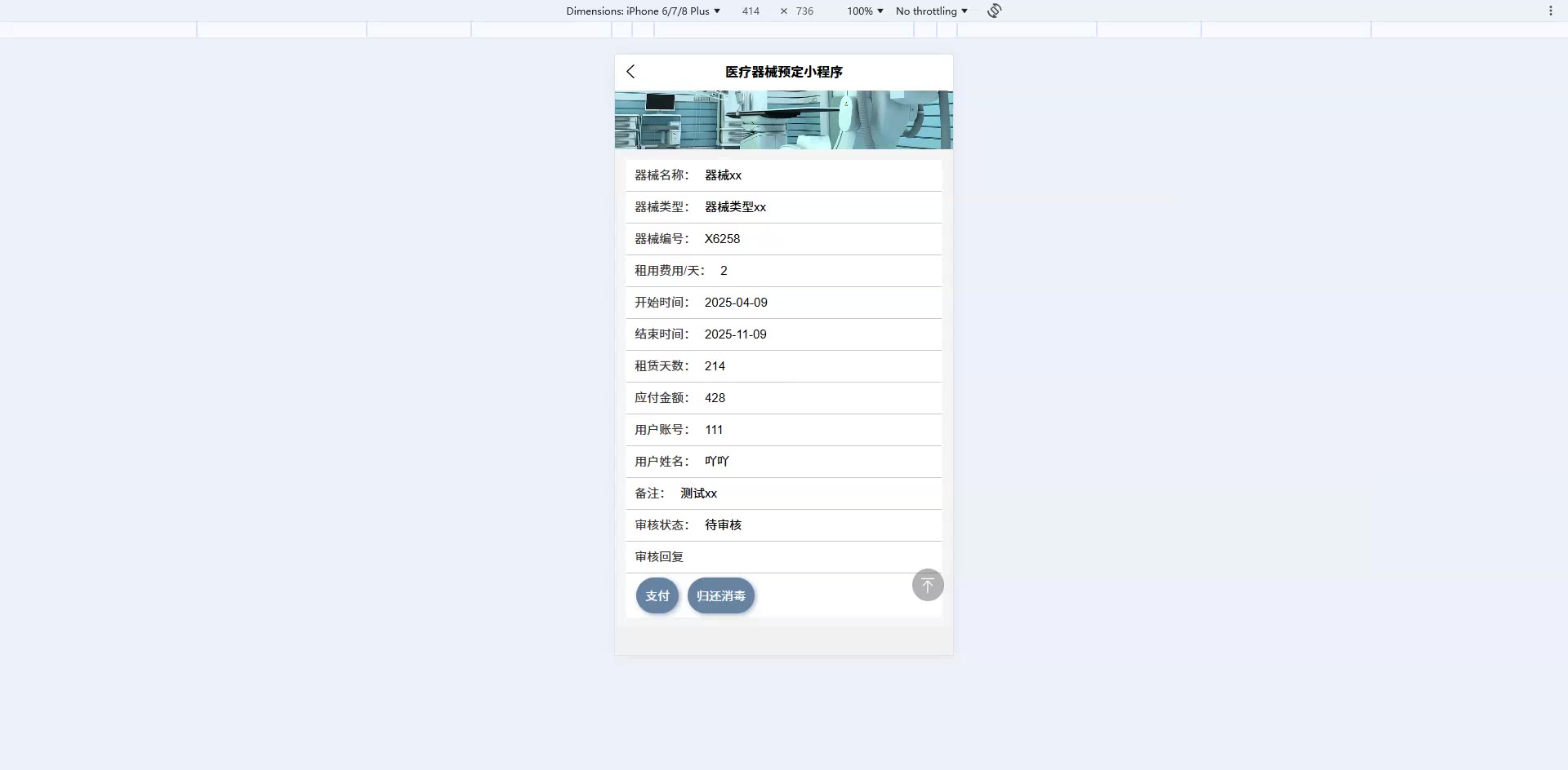 基于SpringBoot+Vue的医疗器械预定小程序源码weixin629