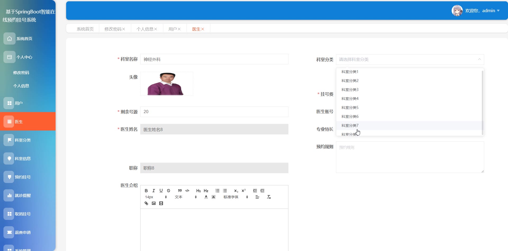 基于SpringBoot+Vue的在线预约挂号系统小程序源码weixin630