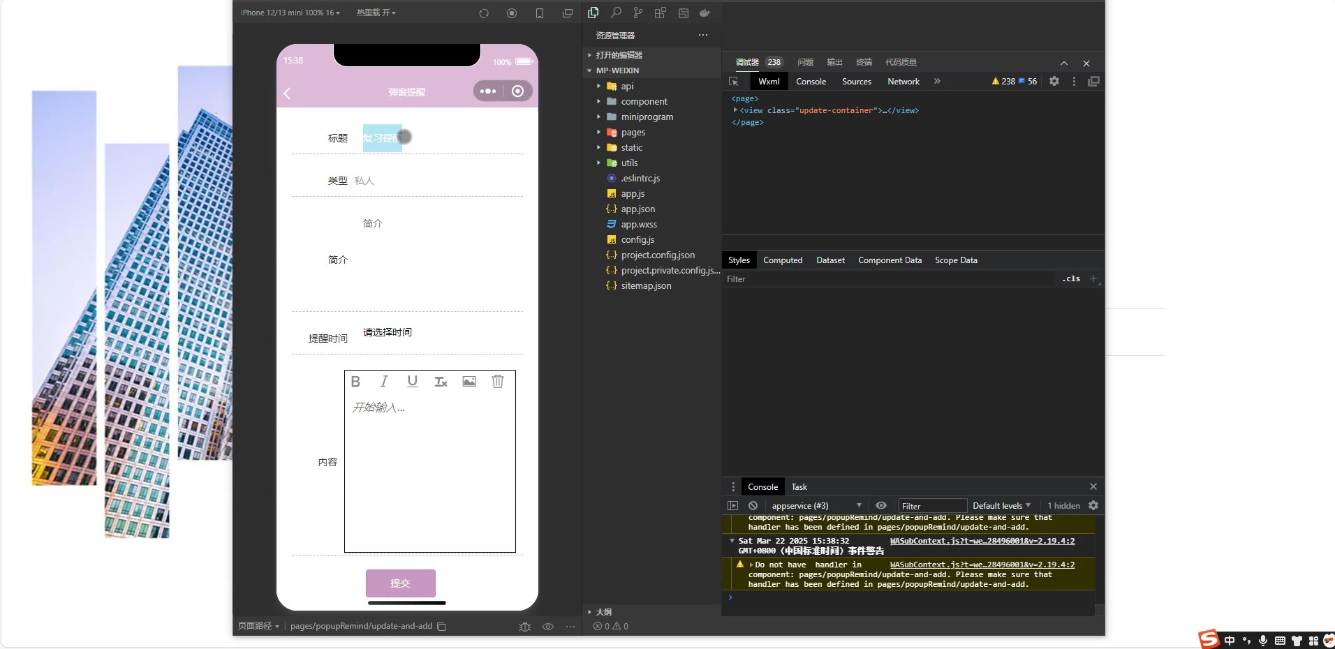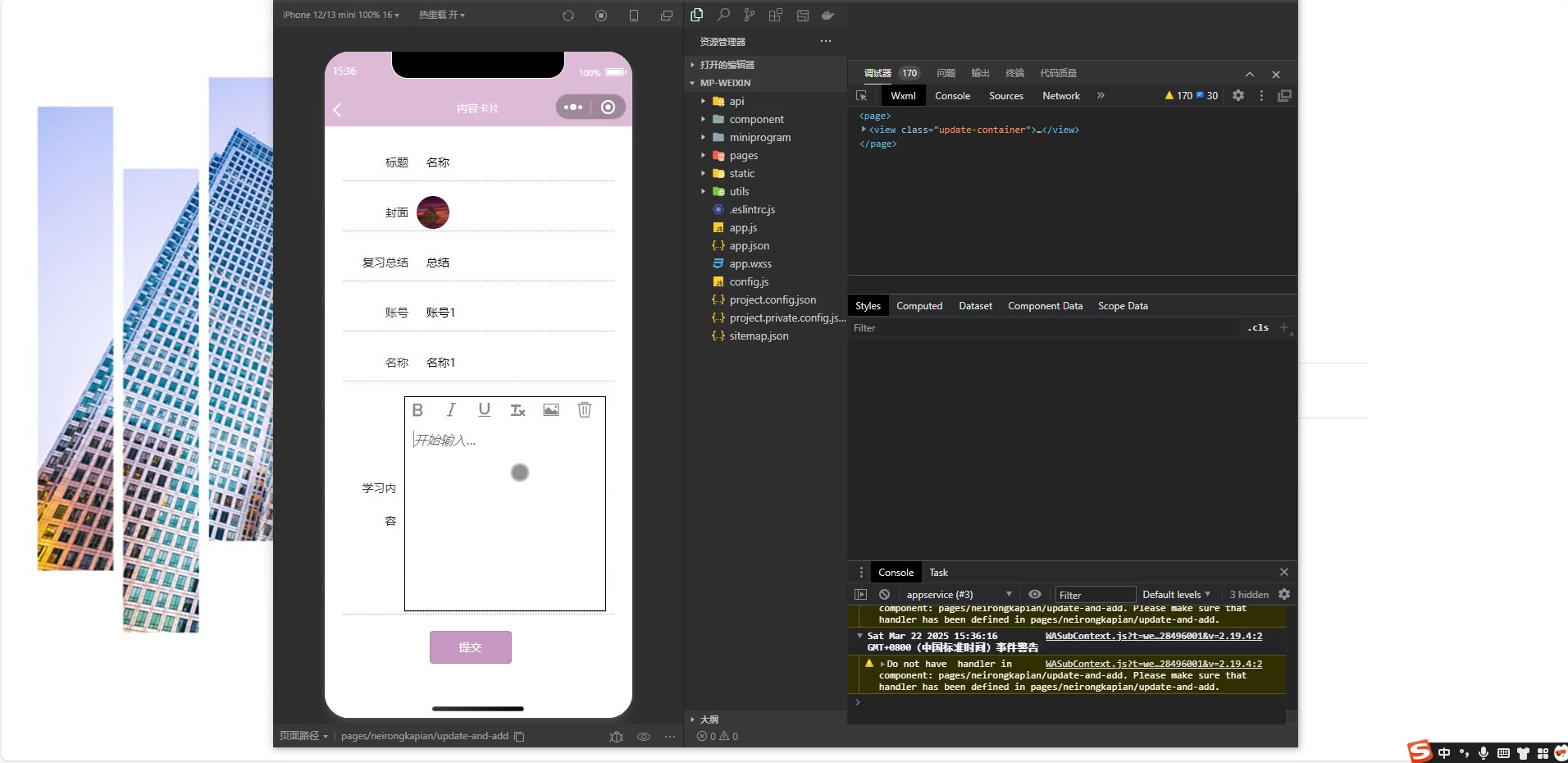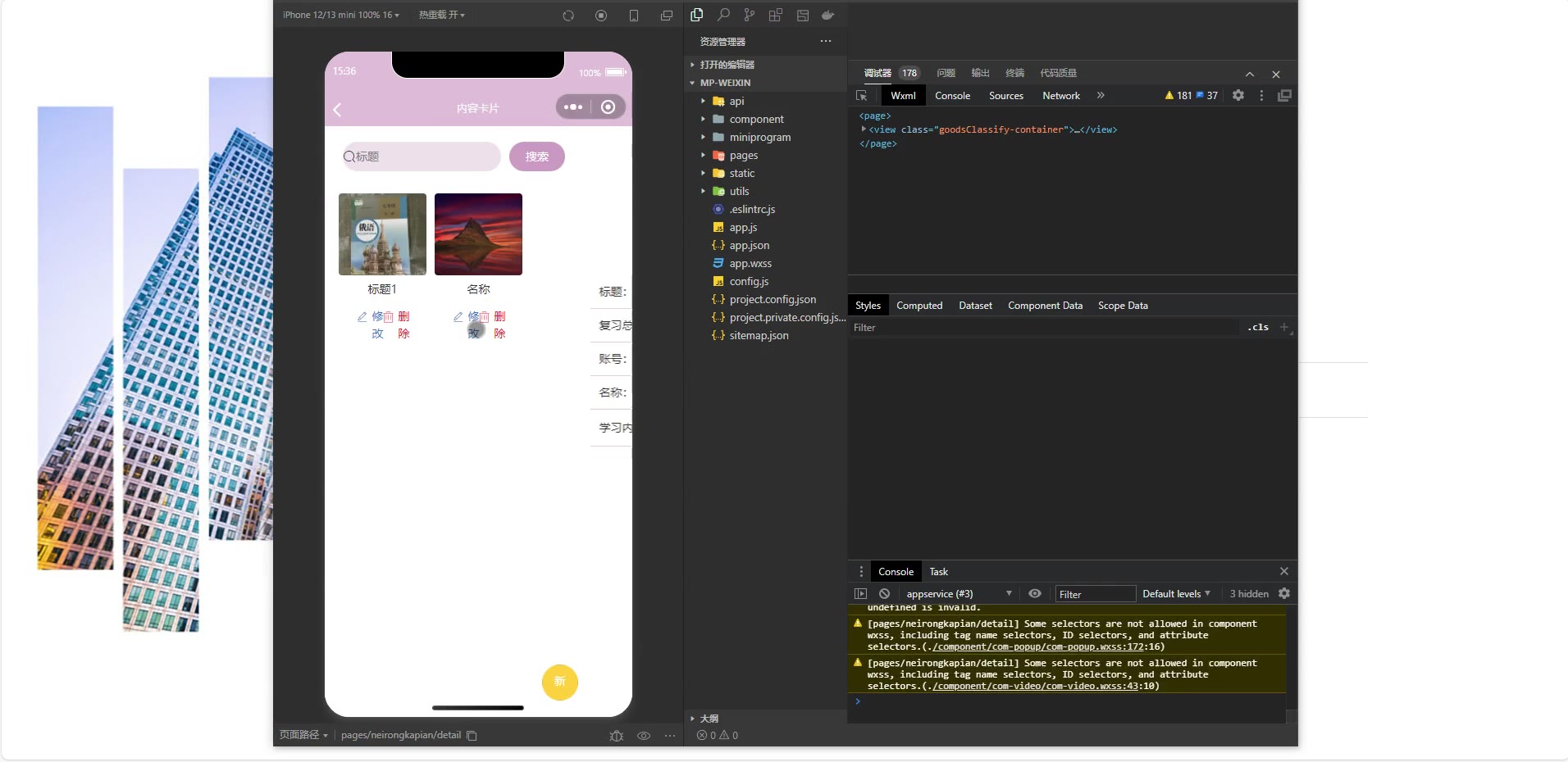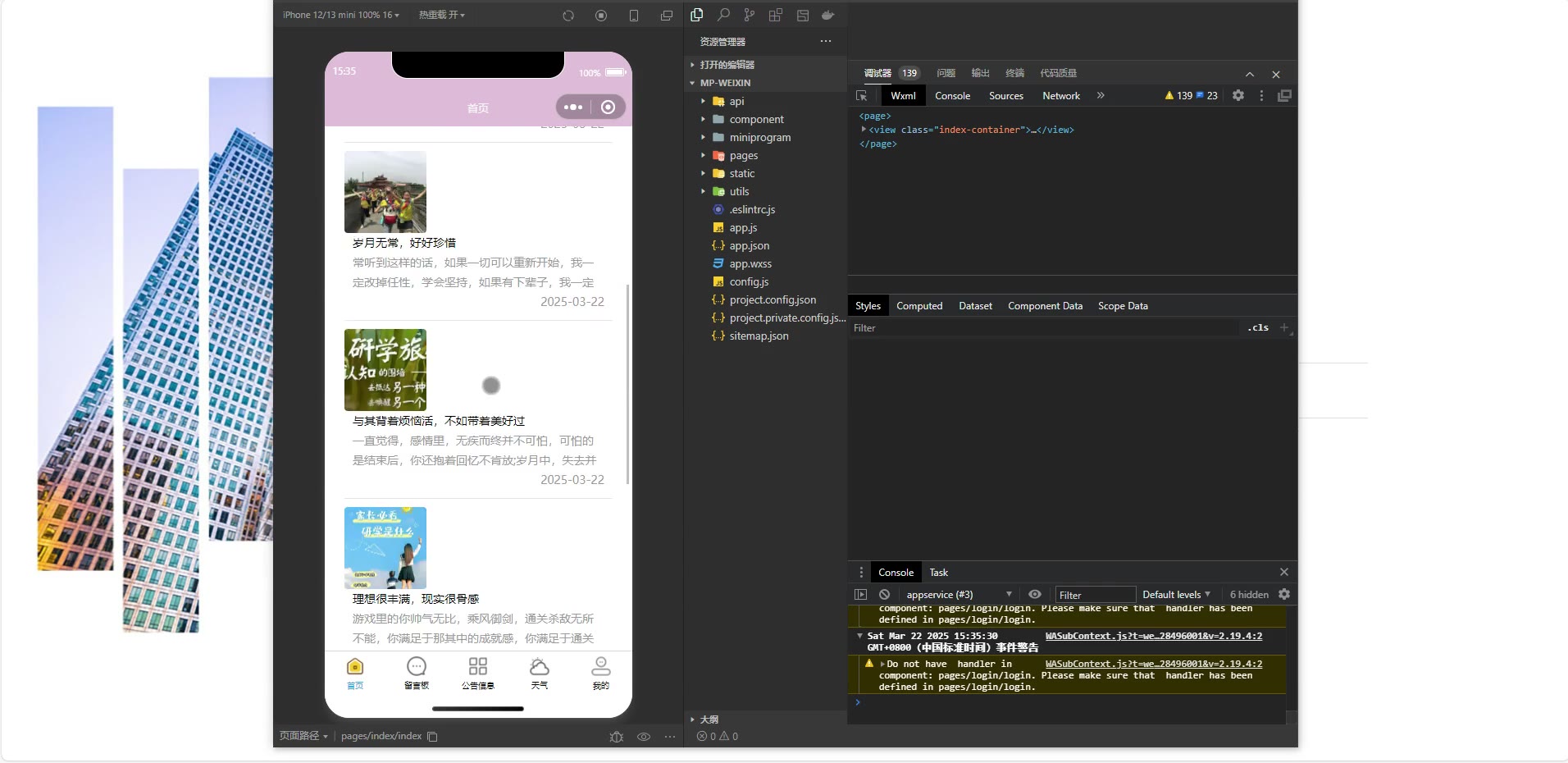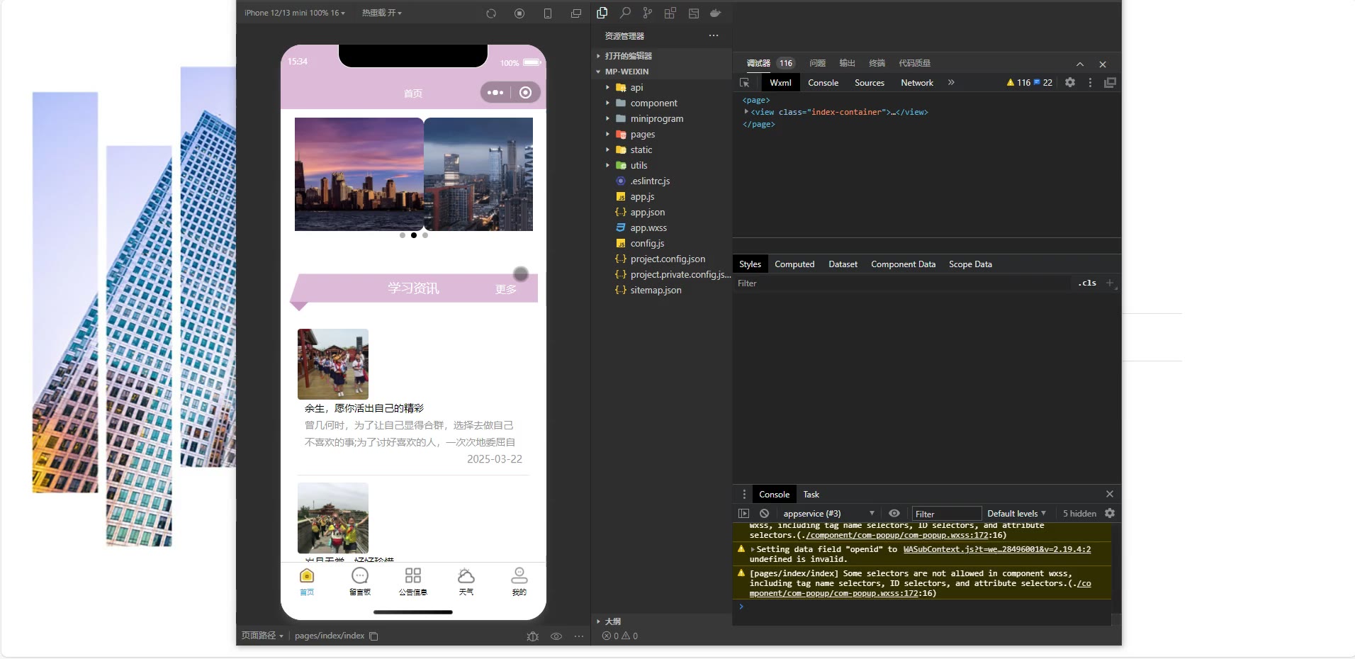 ③:技术栈:Java、SpringBoot+vue+小程序 小程序:微信开发者工具