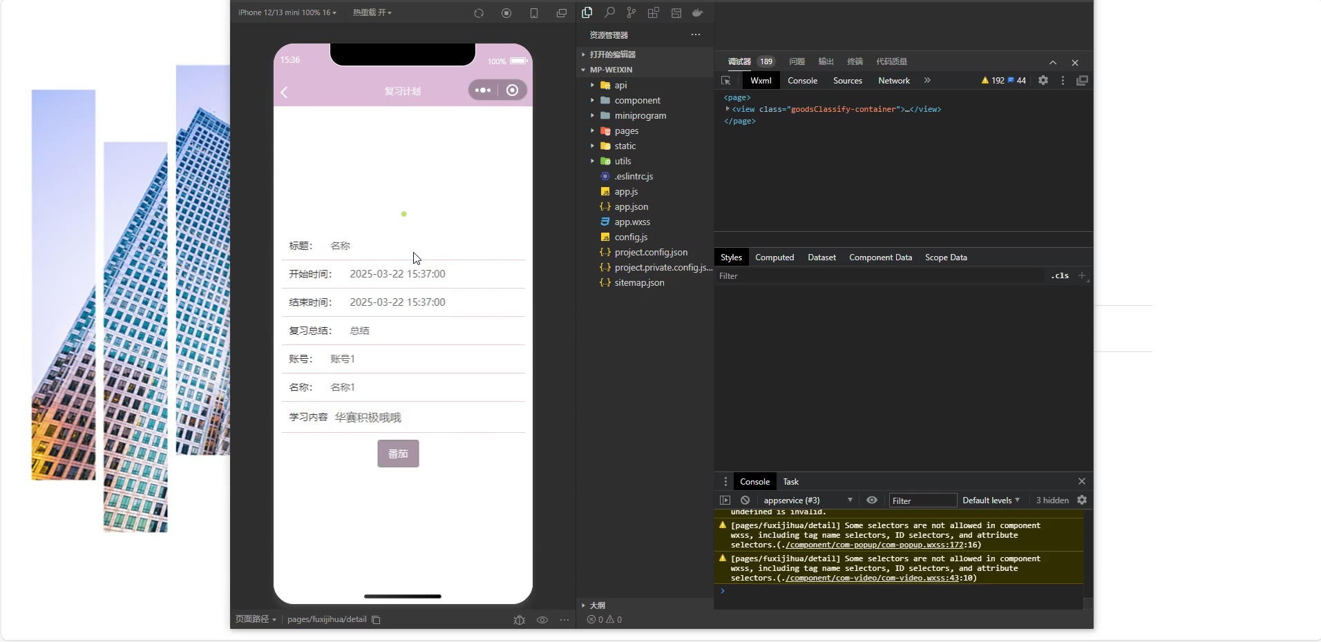 基于SpringBoot+Vue3的复习学习计划原生小程序源码weixin676