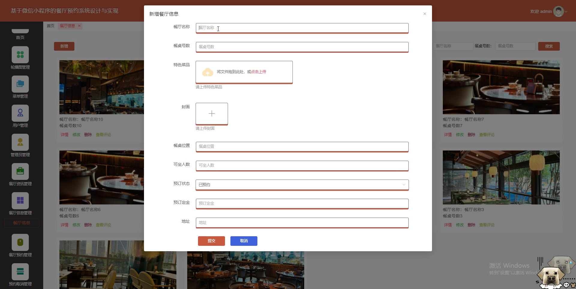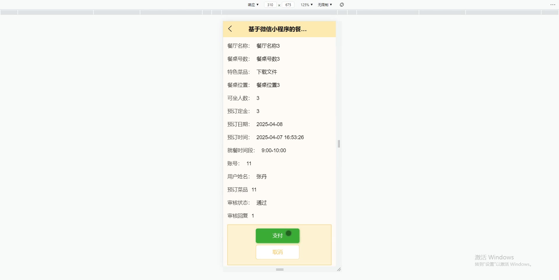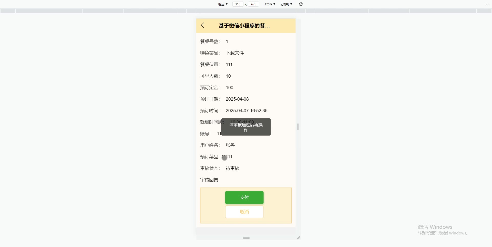 基于微信小程序的餐厅预约系统uniapp+SpringBoot+Vue3小程序源码weixin683