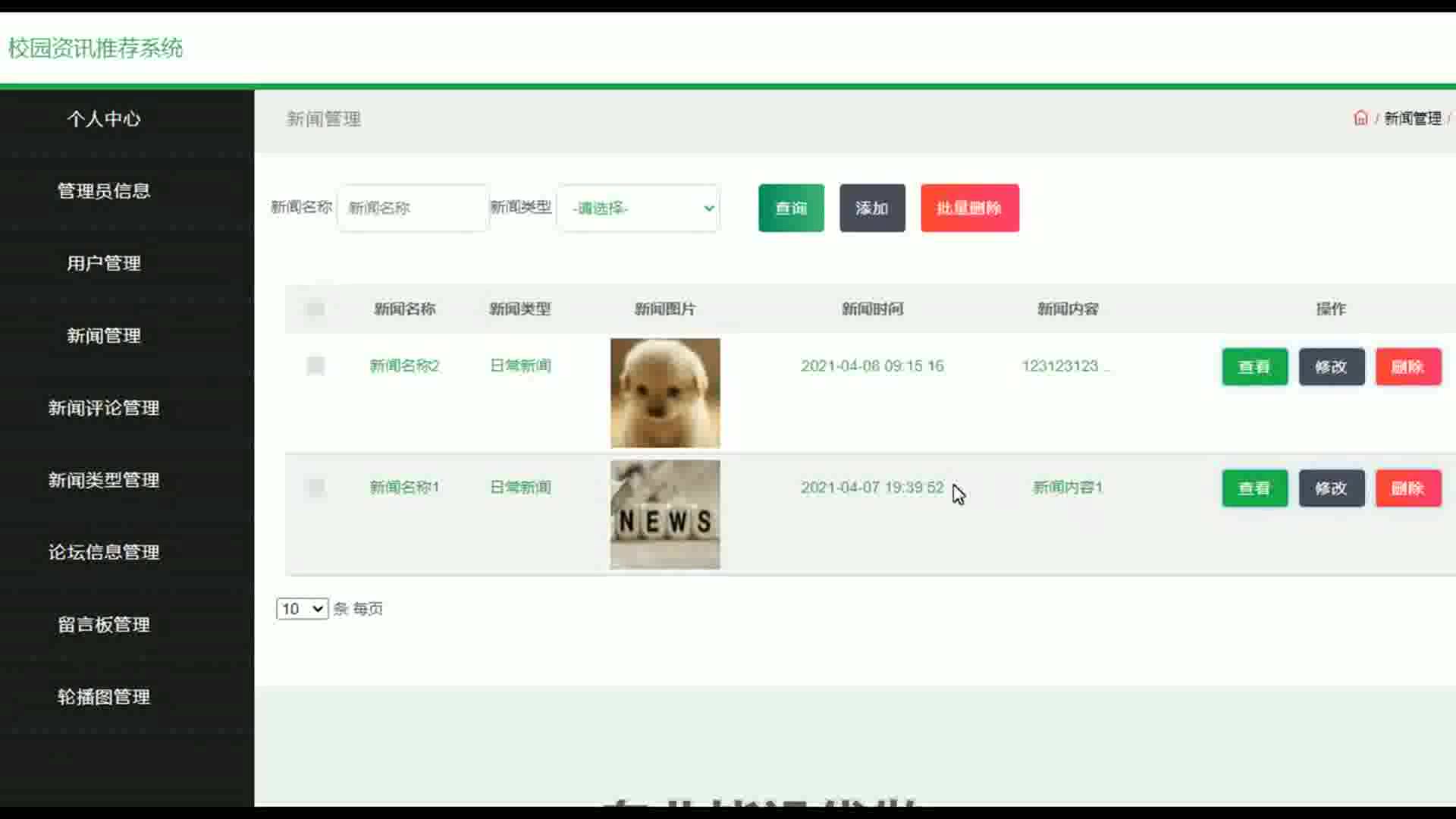 ssm校园资讯推荐系统源码和论文166